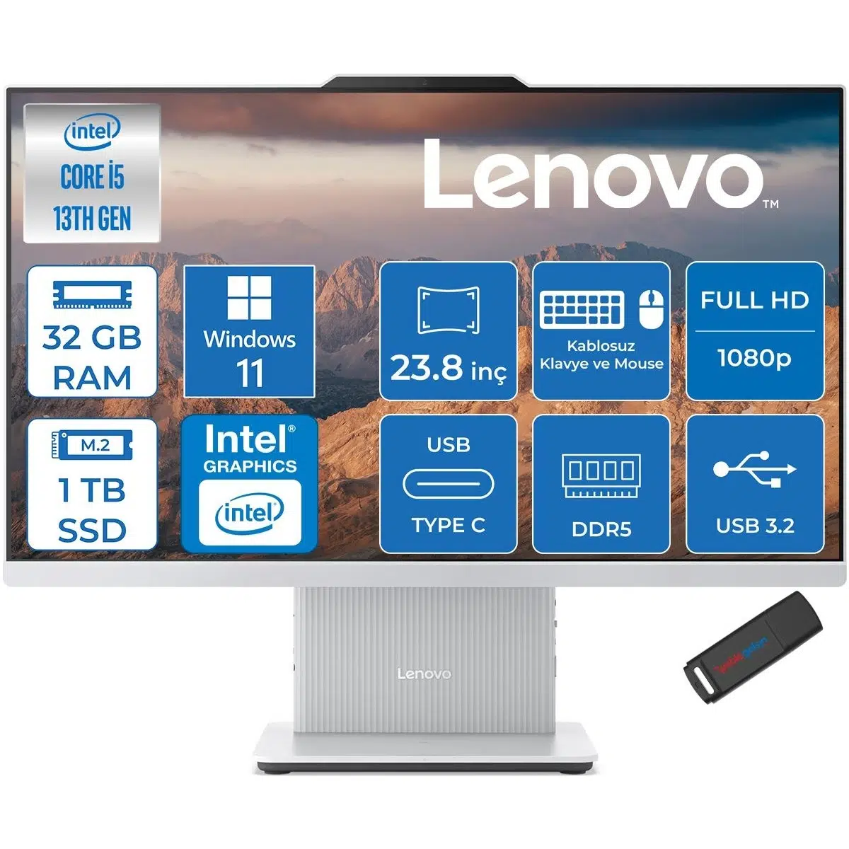| Etiketler | Ideacentre Aıo 24IRH9 Intel Core I5 13420H 32GB Ddr5 1tb SSD Windows 11 Pro UHD Graphics 23.8" Fullhd (1920X1080) IPS 100Hz 99% Srgb All In One Bilgisayar F0HN0053TRP13 + Zetta Flash Bellek |