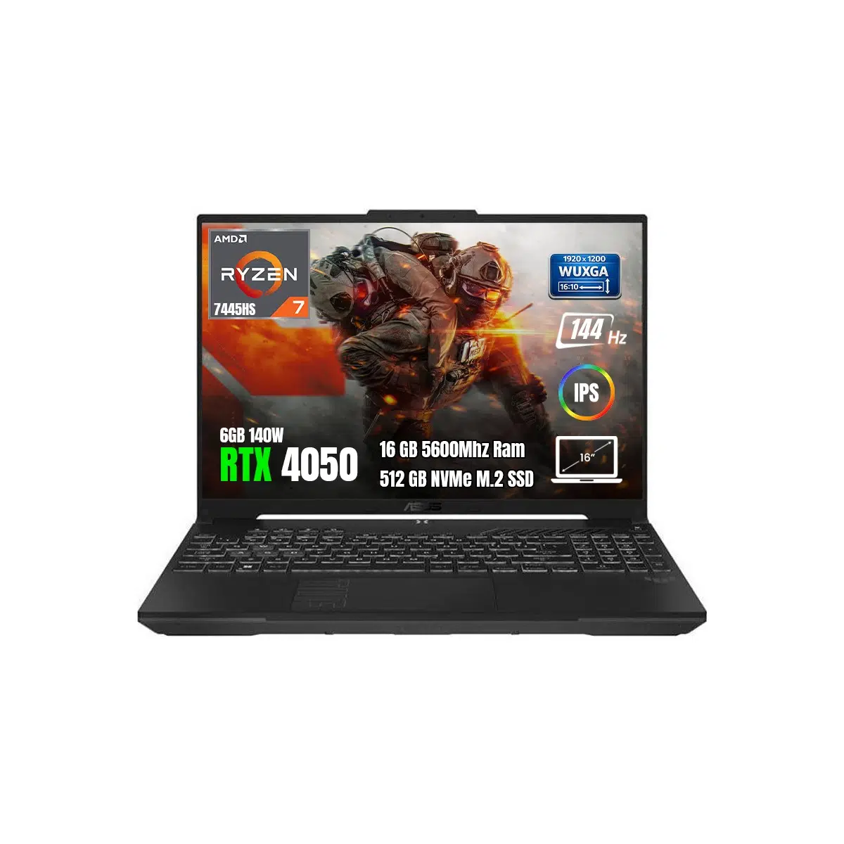 | Etiketler | Tuf Gaming A16 FA607NUG-RL208 Amd Ryzen7-7445HS 16GB 512GB SSD RTX4050-6GB 140W 16" Wuxga 144Hz Freedos Taşınabilir Bilgisayar |